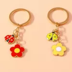 Brighten up your keys, bag, or accessories with this adorable Ladybug and Flower Enamel Keychain. Designed to charm and delight, this whimsical keyring features a sweet little ladybug paired with a colorful flower pendant, all finished in glossy enamel and warm gold-tone metal. Whether you're looking to add personality to your handbag, keep track of your keys, or gift someone a touch of cuteness, this trendy keychain makes the perfect choice.