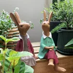 Crafted from high-quality resin, these bunny couple ornaments are durable and weather-resistant, making them suitable for both indoor and outdoor use. Each rabbit is carefully detailed in a cartoon-like pastoral style, capturing the charm of countryside life with gentle expressions, playful poses, and earthy colors. Measuring approximately 3.5 inches wide, 6.7 inches deep, and 11.8 inches tall, they’re perfectly sized for tabletops, shelves, entryways, or garden corners.