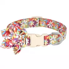 This Spring Flower Print Bowtie Collar is perfect for everyday use or special occasions. The adjustable and secure fit ensures that your dog will stay comfortable no matter where you go, whether it’s a casual walk or a special pet-friendly event. With its stylish design and durable construction, this collar is a must-have for every dog owner looking to add some flair to their pet's accessories. So why wait? Treat your furry friend to this cute, comfortable, and functional collar today!