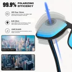 - Polarized Lenses: Reduces glare from reflective surfaces like water and roads for clearer vision.