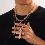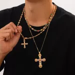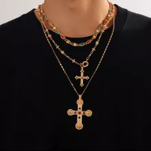 This necklace features a blend of materials, including high-quality metal alloy and imitation pearls, creating a contrast between softness and strength. The oversized cross pendant is encrusted with rhinestones for a glamorous touch, while the chunky link chain adds an urban edge. Choose from gold or silver tones to match your unique vibe and wardrobe.