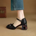 Made with a high-quality synthetic upper and soft genuine sheepskin lining, these sandals feel as good as they look. The split leather round toe offers breathable wear, while the open sides and fish mouth toe design keep your feet cool and fresh in warmer weather. A secure buckle strap ensures a snug fit, while the covered heel adds extra support for all-day wear. The hoof-style heel measures approximately 2.2 inches (5.5 cm), giving you just the right amount of lift for added elegance without sacrificing stability.Why You'll Love These Sandals