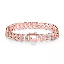 The bracelet is crafted from solid 925 sterling silver and finished with a rich layer of 18K gold plating, available in both white gold and rose gold tones. Each link is embedded with 1.6 mm round cut D color VVS1 moissanite stones, giving it a radiant shine that rivals real diamonds — and yes, it passes the diamond tester. It’s bold. It’s certified. It’s built to stand out.