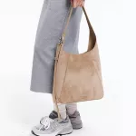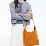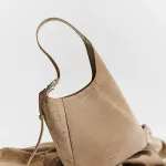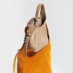 What sets this bag apart is its combination of understated luxury and practical function. The faux suede material delivers high-end texture without the need for extra care, and the flat, unlined bucket structure makes it unique and lightweight. It’s a piece that speaks to effortless sophistication — offering elegance without trying too hard.