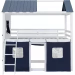 Transform your child’s bedroom into a dream play space with this charming full-size loft bunk bed designed in a whimsical house shape. Complete with a tent, windows, roof, and elegant details like window sills, it’s the perfect combination of fun and function. This loft bed inspires creativity while offering a cozy, secure place to sleep and play—making every bedtime feel like a new adventure.