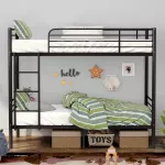 This bunk bed isn’t just a place to sleep—it's an investment in your home’s functionality and style. The space-saving design is perfect for small rooms, offering a cozy sleeping space for two without compromising floor space. The generous under-bed storage is an added bonus, keeping your room tidy and organized while offering ample room for storage. Plus, with its heavy-duty metal frame and robust slats, you can trust this bunk bed to hold up through years of use.