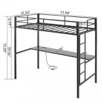 Maximize your room's potential with this innovative Twin Metal Loft Bed Frame, designed to elevate both your space and style. Featuring a sleek and sturdy metal frame, this bed offers not only a comfortable sleeping area but also a built-in charging station and a functional desk—perfect for both kids and adults. Whether you're furnishing a small apartment, dorm room, or teen’s bedroom, this loft bed brings modern convenience to any space.