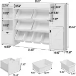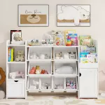 - All-in-One Storage: Combines toy bins, bookcase cubbies, and cabinets in one sleek unit.