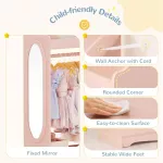 - Full-Length Mirror: Perfect for dress-up time, this wardrobe is equipped with a full-length mirror, allowing kids to see themselves from head to toe while trying on different outfits. The mirror is securely fixed, ensuring stability and safety.