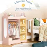 Keep your child's clothes, toys, and costumes neat and organized with this stylish Kids Dress-Up Storage with Mirror. Designed to help children develop their own sense of order while adding charm to their space, this wardrobe organizer is both functional and fun. With a spacious layout and a full-length mirror, it provides a perfect place for your little one to store and display their favorite outfits and accessories. Ideal for bedrooms, playrooms, or nurseries, it encourages independence while making tidying up an enjoyable task!