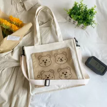 Use our battle tested marketing materials for Canvas Shoulder Tote Bag with Cute Bear Print – Eco-Friendly College Handbag