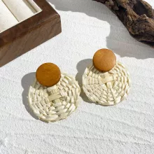 Use our battle tested marketing materials for Handmade Rattan Knit Boho Drop Earrings with Geometric Wooden & Acrylic Accents