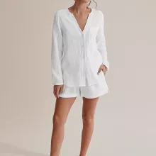 Use our battle tested marketing materials for Women's 2-Piece Cotton Muslin Pajama Set - V-Neck Long Sleeve Top & Shorts