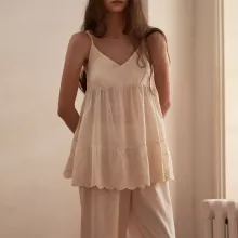 This set is designed for every woman who values comfort and style at home. Best worn during warm spring or summer days, this lightweight pajama set is perfect for lounging, sleeping, working from home, or casual mornings on the patio. It also makes a thoughtful gift for anyone who loves relaxed fashion with a refined twist.