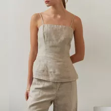 What sets this camisole apart is its blend of breathable comfort and elegant simplicity. The natural cotton-linen blend not only feels amazing against your skin but also elevates your outfit with its subtle texture and flow. The halter neckline and cropped cut bring a touch of retro flair, while the minimalist design ensures it stays stylish for seasons to come.