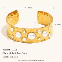 Use our battle tested marketing materials for Elegant Wide Face Gold-Plated Pearl Open Cuff Bracelet