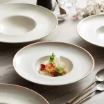 - Minimalist elegance – Clean lines and solid tones complement any food style