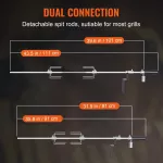 - Dual Connection for Versatility - The kit offers flexibility with two square spits and an additional 7.7-inch round spit, ideal for expanding your grilling options.