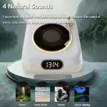 - White Noise Sleep Aid – Includes 4 calming sounds: ocean waves, rainfall, soft wind, and flowing stream