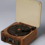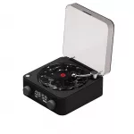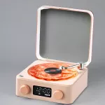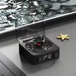 Crafted in a vintage turntable style and compact enough to fit in the palm of your hand, this Bluetooth speaker is as decorative as it is functional. Its rotating transparent turntable lights up with a soft, breathing glow while the music plays, creating a visually relaxing experience. The built-in LED display blends into the design and can be activated by a simple tap or surface vibration, keeping your space distraction-free at night.