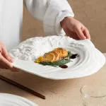 Elevate your dining experience with the Creative Peak Shaped Ceramic Food Plate. This unique and eye-catching plate is perfect for serving a variety of dishes, from steak to desserts. The innovative peak-shaped design adds a modern twist to your tableware, making it a standout piece at any meal. Whether you're hosting a dinner party, serving guests at a restaurant, or enjoying a meal at home, this plate combines both functionality and style, ensuring your food looks just as good as it tastes.