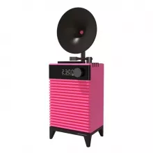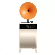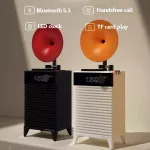 Its three playback modes—Bluetooth, TF card, and AUX—make it versatile enough to match any mood or setup. A 1200mAh battery provides up to 6 hours of continuous playtime, while the easy-to-read LED clock on the front adds practical functionality. Whether on a bookshelf, nightstand, or desk, this speaker blends effortlessly into your space, combining retro style with everyday convenience.