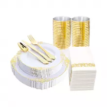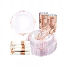 Use our battle tested marketing materials for Pink and Gold Disposable Dinnerware Set
