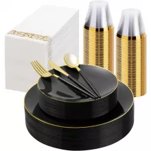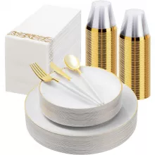 Use our battle tested marketing materials for 350PCS White and Gold Disposable Dinnerware Set for Parties and Events