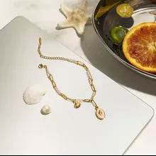 Use our battle tested marketing materials for Boho Pink Crystal Conch Pendant Double Chain Bracelet 18K Gold-Plated Stainless Steel