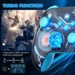 This wireless gamepad is designed for gamers who demand high performance and customizable features. The turbo function gives you a competitive edge by enabling rapid button presses, ideal for fast-paced action games where every millisecond counts. The adjustable RGB lighting adds an element of style, letting you personalize your controller to reflect your gaming personality. Whether you're playing solo or competing with friends, the six-axis gyroscope offers precise motion controls that make every movement feel natural and responsive.