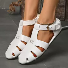 Use our battle tested marketing materials for White Hollow Out Roman Flat Sandals for Women – Summer PU Leather Dress Shoes