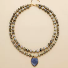 Discover the stunning beauty of the Natural Stones Crystal Heart Teardrop Pendant Necklace, a handmade masterpiece designed to bring elegance and charm to any outfit. This two-layer necklace features a collection of natural stones, including Labradorite, Amazonite, Aventurine, and Jasper, each chosen for its unique beauty and powerful energy. The heart-shaped pendant, delicately crafted, hangs gracefully from the beads, making it a statement piece that radiates bohemian sophistication.