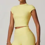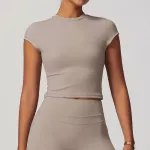 This top is perfect for anyone who lives an active lifestyle. From yoga and running to cycling, hiking, and dance, it’s made to support your motion and style. Its compressive yet breathable design offers gentle support that doesn’t hold you back. The short sleeves and crew neck keep things simple and sporty, while the smooth, skin-friendly fabric feels great against your body, even during long workouts.Get Ready to Feel Strong, Stylish, and Supported