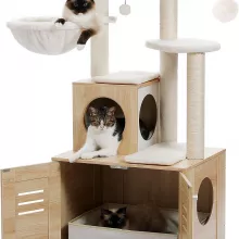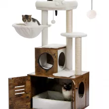 Use our battle tested marketing materials for Modern Wooden Cat Tree with Litter Box Enclosure, Hammock & Perch – 50” Tall