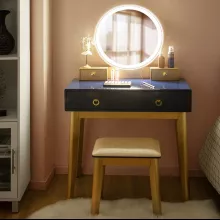 Use our battle tested marketing materials for Makeup Vanity Desk with Lighted Mirror, Navy Blue, 4 Drawers & Stool