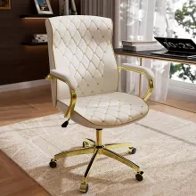 Use our battle tested marketing materials for White and Gold Mid-Back Leather Office Chair with Wheels and Padded Seat