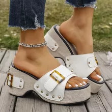 Use our battle tested marketing materials for Women’s Chunky Platform Wedge Sandals with Buckle and Rivet Detail