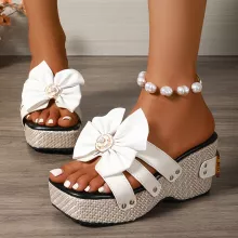 Use our battle tested marketing materials for Women's Fashion Wedge Sandals with Big Bow and Pearls - Chunky Platform Slides