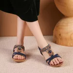 These Floral Bohemian Sandals are not just a pair of shoes – they’re a statement. The unique floral pattern combined with crystal detailing ensures that you’ll turn heads wherever you go. Whether paired with a sundress for a day out or worn with your favorite shorts for a casual beach stroll, these sandals will complete your look effortlessly. Their lightweight construction means you can wear them for hours without discomfort, while the flexible elastic band ensures a perfect fit every time. The non-slip rubber outsole is perfect for keeping you steady on your feet, while the low, flat heel offers just the right amount of elevation without compromising comfort. Designed with the needs of modern women in mind, these sandals are perfect for any summer occasion. From relaxing by the beach to a laid-back evening with friends, these sandals bring a refreshing, bohemian vibe to any outfit.Perfect for Your Summer Wardrobe