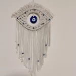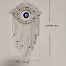 This decorative piece is more than just a pretty addition to your wall—it's also a symbol of protection and good energy. The evil eye, or “nazar,” has been used for centuries in cultures around the world to ward off misfortune and bring good luck. Displaying one in your home is not only stylish, but also meaningful. The natural textures and neutral tones of the macrame make it versatile enough to suit many interior styles—from bohemian and rustic to minimalist and modern. It’s best used as a central decorative element in a calm and cozy space, whether it’s your meditation corner, living room, or bedroom wall. This tapestry also makes a thoughtful gift for housewarmings, birthdays, or anyone who loves unique and handcrafted home decor.Bring Home Positivity Today