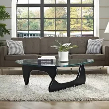 Use our battle tested marketing materials for Modern Triangle Glass Coffee Table with Solid Wood Base, Mid-Century Design