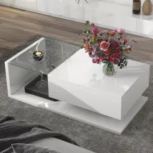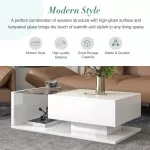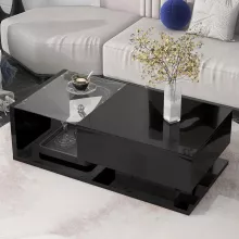 Designed to be both functional and stylish, this coffee table is an ideal addition to any modern home. Whether you're entertaining guests or simply relaxing after a long day, this table offers the perfect balance of design and practicality. The combination of wood and glass creates a warm, inviting atmosphere while offering durability that stands the test of time. Plus, the easy-to-maintain high-gloss surface makes it ideal for busy households.