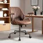 Wrapped in high-quality faux leather, this chair features a soft, breathable surface that feels luxurious to the touch. The classic mid-back silhouette, curved armrests, and wide cushioned seat provide a cozy, supportive experience every time you sit down. Filled with plush cotton and fire-resistant padding, the thick seat and backrest create a cloud-like feel — ideal for extended use.