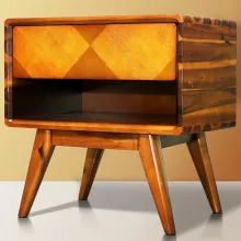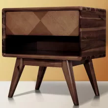 Use our battle tested marketing materials for Mid-Century Acacia Wood Nightstand with Drawer & Shelf, Walnut Finish