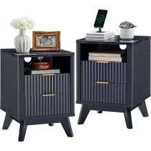 Use our battle tested marketing materials for Modern Fluted Nightstand Set of 2 with Faux Marble Top & Charging Ports