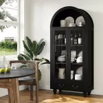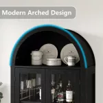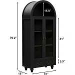 Enhance the charm and functionality of your living space with this 70" Farmhouse Tall Arched Storage Cabinet. Featuring an elegant arched design, this freestanding storage cabinet blends modern aesthetics with timeless style. With its tempered glass doors, retro brass handles, and ample storage capacity, this piece serves as both a practical storage solution and a beautiful statement in any room.