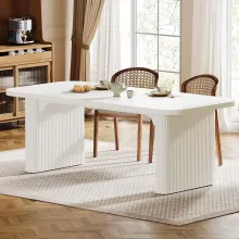 Use our battle tested marketing materials for 63-Inch Modern Wood Dining Table for 6 with Sturdy Double Pedestal Base