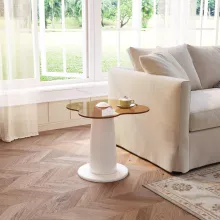 Use our battle tested marketing materials for Modern Irregular Side Table with Tea-Colored Tempered Glass for Small Spaces