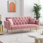 - Modern, Minimalist Style: With its clean lines, soft velvet upholstery, and sleek metal legs, this futon complements modern décor while providing a stylish and functional seating solution.