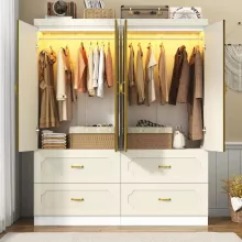 Use our battle tested marketing materials for 75" Freestanding White Armoire Wardrobe with Mirrors, LED Lights & Drawers